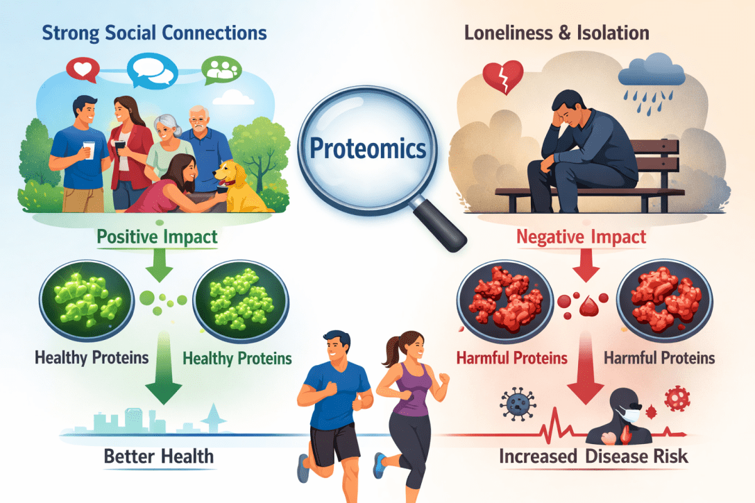 そして参加者の孤独感や社会的孤立の程度と、血液中のタンパク質パターンを照らし合わせたのです。すると、孤独や社会的孤立を感じている人たちには、特徴的なタンパク質シグネチャー(タンパク質の組み合わせパターン)が存在することが判明しました。